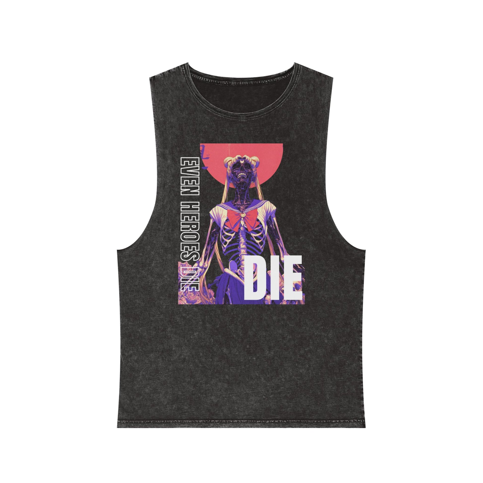 Unisex Stonewash Graphic Tank Top - Even Heroes Die